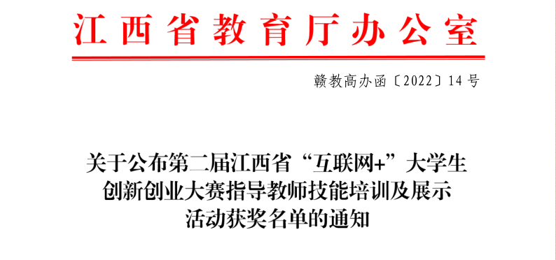根据《关于举办第二届江西省“互联网+”大学生创新创业大赛指导教师技能培训及展示活动的通知》安排,经学校推荐、集中培训、晋级考核和现场技能展示,第二届江西省“互联网+”大学生创新创业大赛指导教师技能培训及展示活动已于11月25日圆满结束。全省共有100名教师在本次活动中获奖,我院叶英聪老师在本次活动中斩获二等奖,并被纳入江西省“互联网+”大学生创新创业大赛专家导师库。