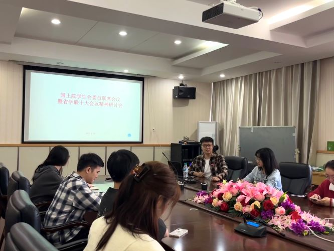 江西省学生联合会第十次代表大会于2023年4月8日至10日在南昌胜利召开。为学习并贯彻落实会议精神,国土院研究生分会于4月18日开展了省学联十大会议精神研讨会。院团委副书记赵晨刚老师出席并主持会议。