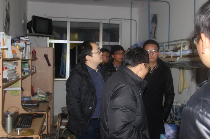2月17日晚,国土学院党委书记郭旭、副书记黄新志学工办老师、各班级班主任到学生寝室看望学生。