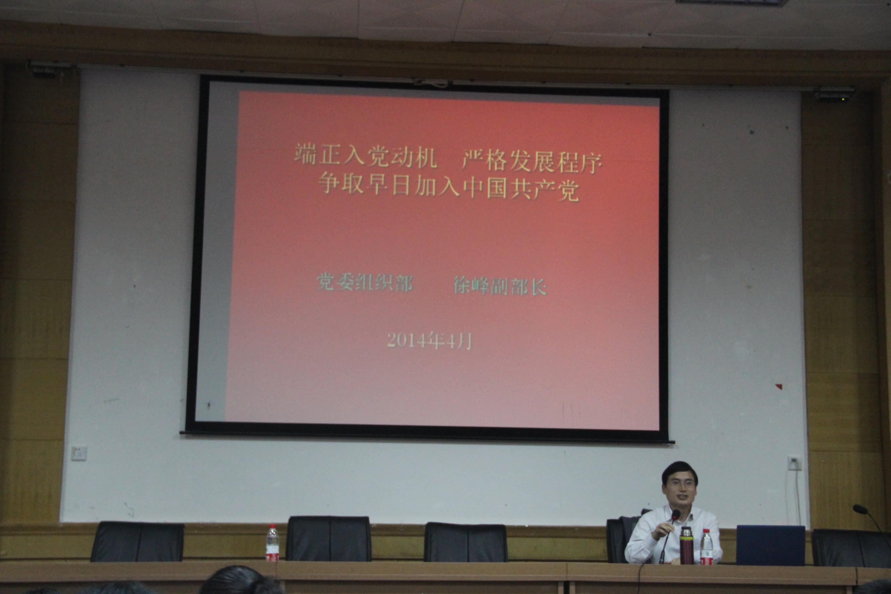 331晚,校党委组织部副部长徐峰老师,受邀给学院全体参加业余党校培训的学员上了主题为“端正入党动机,严格发展程序,争取早日加入中国共产党”这一课。