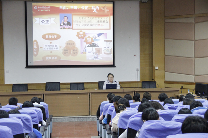 讲座内容分为什么是价值和价值观,价值观的含义及特点,人的价值观的形成和实现以及实现价值观要怎么做四部分。讲座开始,黄书记从几个案例入手,深入分析,耐心引导,提出什么是价值,价值观的含义及特点。接着,黄书记简单介绍了社会主义核心价值观的形成过程,指出为了增强民族凝聚力,让中华民族更加繁荣富强,必须切实践行社会主义核心价值观。最后,黄书记提出当代青少年要明确自己的历史使命,时刻思考我们应该成为怎样一个人,强调大家要深刻体会,积极响应三个倡导的科学内涵,摆正观念积极践行社会主义荣辱观,为实现中国梦贡献力量。