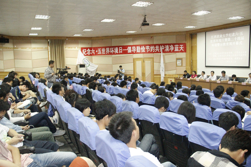 2013年6月2日,在第42个世界环境日即将来临之际。在我校科技大楼报告厅隆重举行“‘倡导厉行节约,共护清净蓝天’bat365中文官方网站纪念‘六.五’世界环境日暨第二十四届环境警示教育周”活动启动仪式。校长助理许斌华,江西省环保厅宣教中心主任李旭亮,校学工部部长左辉群,校党委宣传部副部长胡永升,校团委副书记贺媚,国土学院资环教研室张嵚以及南昌兄弟高校环保社团代表和绿源协会环保志愿者等200余人出席启动仪式,活动由国土学院党委副书记黄新志主持。
