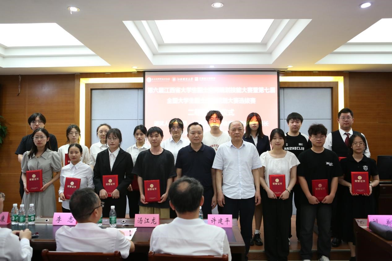 近日,我院土管、地信学生在江西财经大学举办的第六届江西省大学生国土空间规划技能大赛暨第七届全国大学生国土空间技能大赛选拔赛中喜获佳绩。我校共20组作品参赛,有6组进入决赛,获省一等奖2项和二等奖4项。一等奖作品为:《“扁舟江中岛,农耕绘景游”——九江市濂溪区新港镇官洲村“多规合一”实用性村庄规划(2021-2035年)》(指导老师段萍,成员邹郅瑶、郑美莹、万佳悦、毕晨铭)、《余干县三塘乡洪埠村“多规合一”实用性村庄规划(2024-2035年)》(指导老师余敦,成员邱开鑫、杨洁、黎俊豪、陈秋婷)。此外,周丙娟老师、江立武老师、曾建玲老师和郭细根老师指导的作品均获得二等奖。