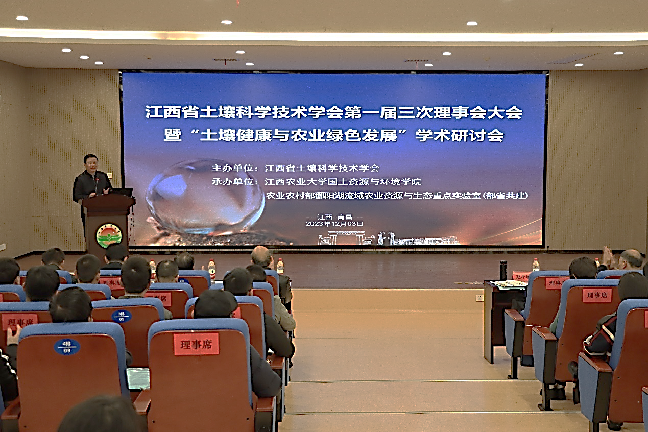 12月3日,江西省土壤科学技术学会第一届三次理事会大会暨“土壤健康与农业绿色发展”学术研讨会在图书馆报告厅举行。来自全省各地的学会理事、会员、嘉宾与学生代表120余人齐聚一堂,听取并审议了学会的年终工作报告和工作计划,共议学会发展新方向。在学术研讨会环节,华中农业大学蔡鹏教授、南京农业大家王敏教授、中国科学院南京土壤所刘明副研究员和bat365中文官方网站周春火教授等四位专家,分别作题为《生物膜涌现性与土壤健康》、《植物氮素营养与土壤健康》、《水稻轮作紫云英对土壤微生物的影响》、《江西省生物炭炭基肥农业应用与思考》的学术报告,进一步提高大学生对土壤和水资源在实现可持续中的重要性和关系的认识,增强土壤保护观念。