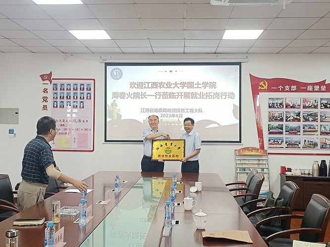 为贯彻落实教育部和学校“访企拓岗”相关要求,推动学院学生就业和教学科研工作,促进与各方合作交流。6月16日,院长周春火,院党委副书记马慧琴以及就业办老师一行来到江西省地质局地理信息大队和江西地源土地房地产评估规划测绘有限公司开展学术交流与访企拓岗促就业活动。