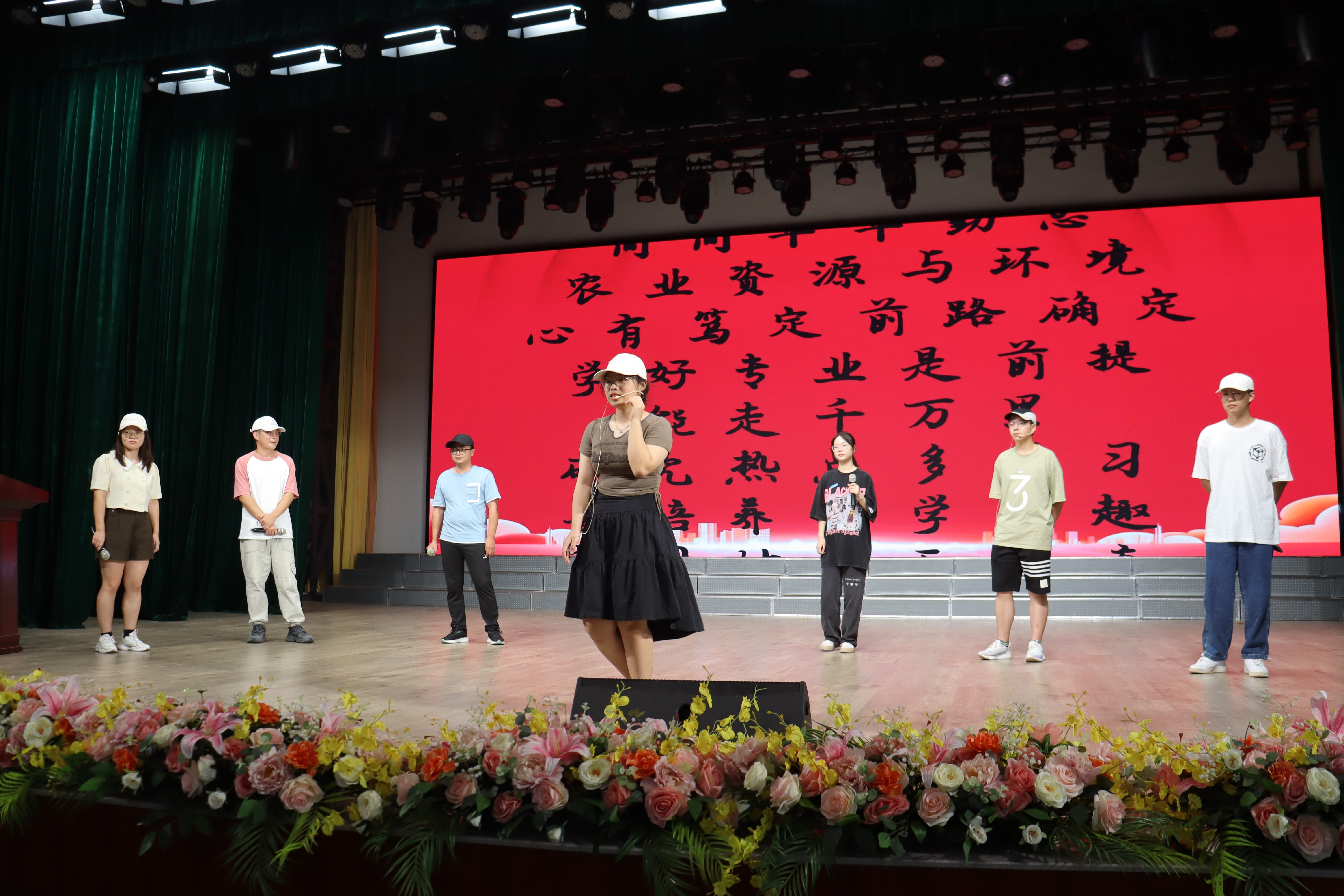 开学典礼上,学院本硕博国家奖学金获得者、优秀推免生代表等“学霸”们,将自己的学习经验、考研心得,填词改编成歌曲《学习经验说》,传递出他们锐意进取、奋发向上的榜样力量,让在场的新生齐呼“优秀”。新生班主任们结合专业特色自编自导的《专业我来说》,更是激发出新生的专业热情。专业学习经验分享,配上学生喜闻乐见的表演形式,引领新生感悟榜样精神、汲取奋进力量,扎实专业知识,勇担起“强农兴农”使命担当。