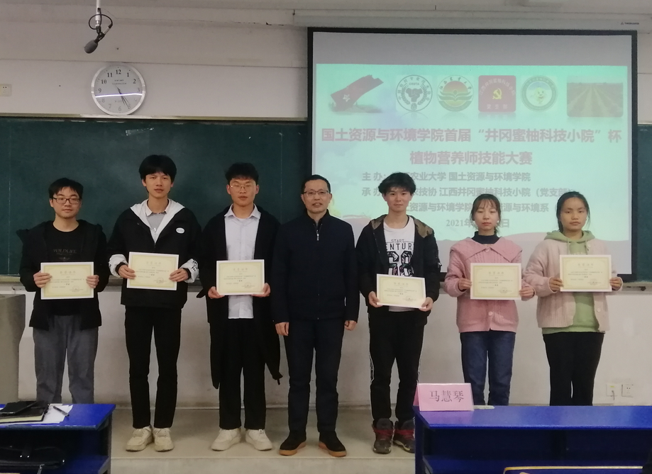 推进国家一流本科专业建设点农业资源与环境专业的建设提高本专业大学生理论与实践相结合的能力,增强学生绿色生态意识和社会责任感2021年12月10日,国土学院成功举办首届“井冈蜜柚科技小院”杯植物营养师技能大赛。学院党委副书记马慧琴出席并致辞,资环系吴建富教授、魏宗强、谢志坚、赵尊康、杨秀霞、谢凯柳等6位老师担任本次大赛评委