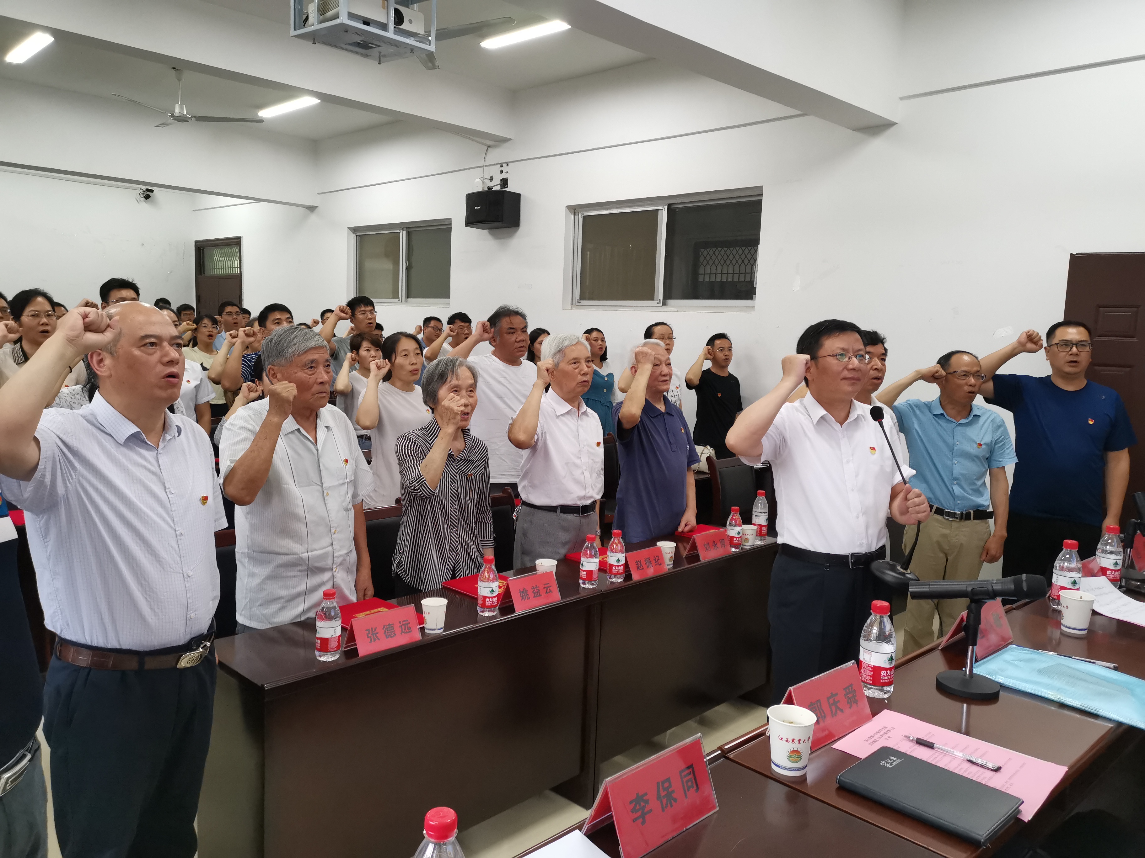 “我志愿加入中国共产党,拥护党的纲领......”大会最后,校长赵小敏带领全体党员重温了入党誓词。