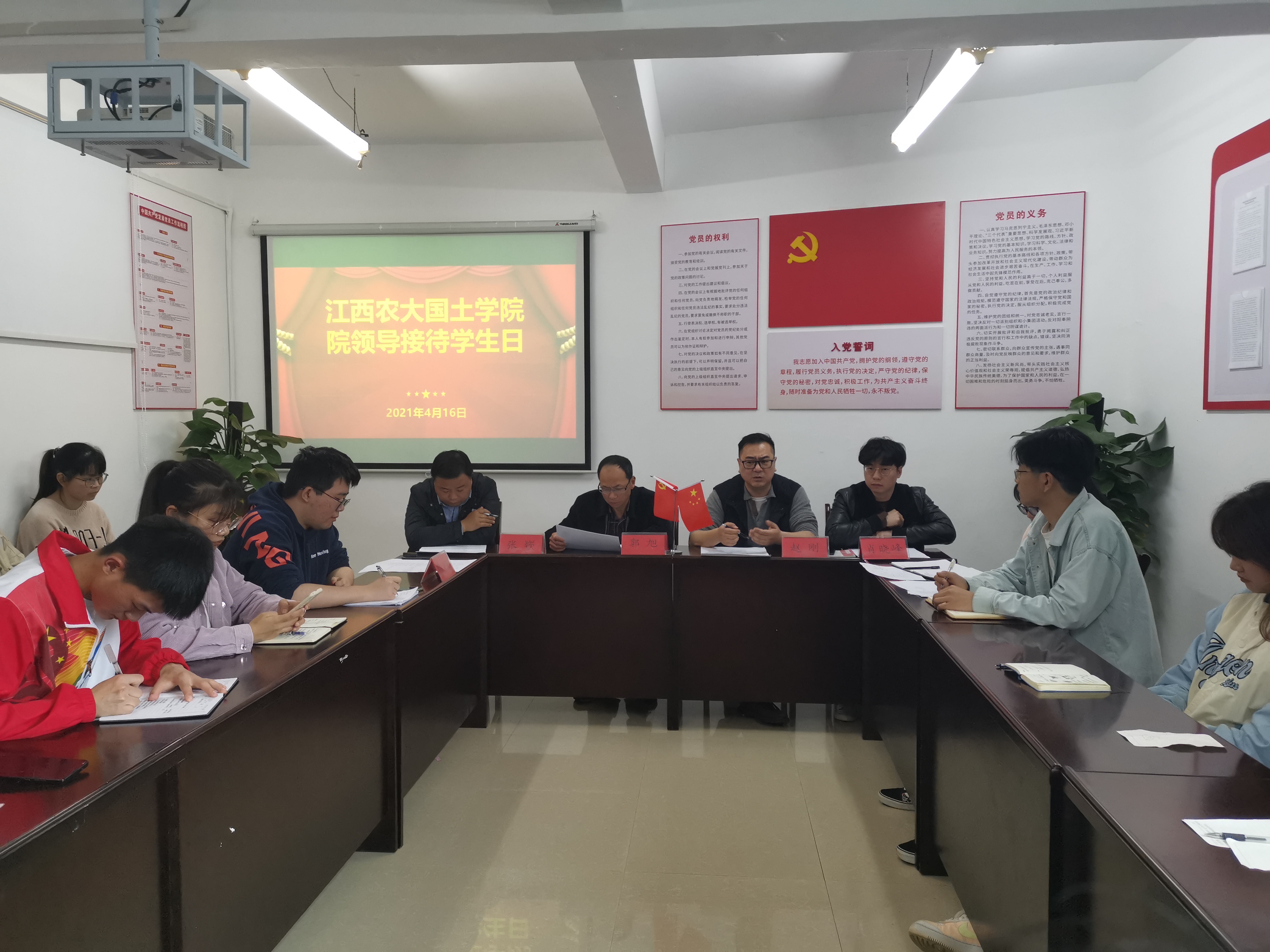 为贯彻落实“我为群众办实事”党史学习教育实践活动要求,416日下午,国土bat365中文官方网站了2021年第一期院领导接待日活动。院党委书记郭旭,党委副书记赵刚,副院长张嵚,院学工办、行政办老师及各班级代表参加接待日活动。