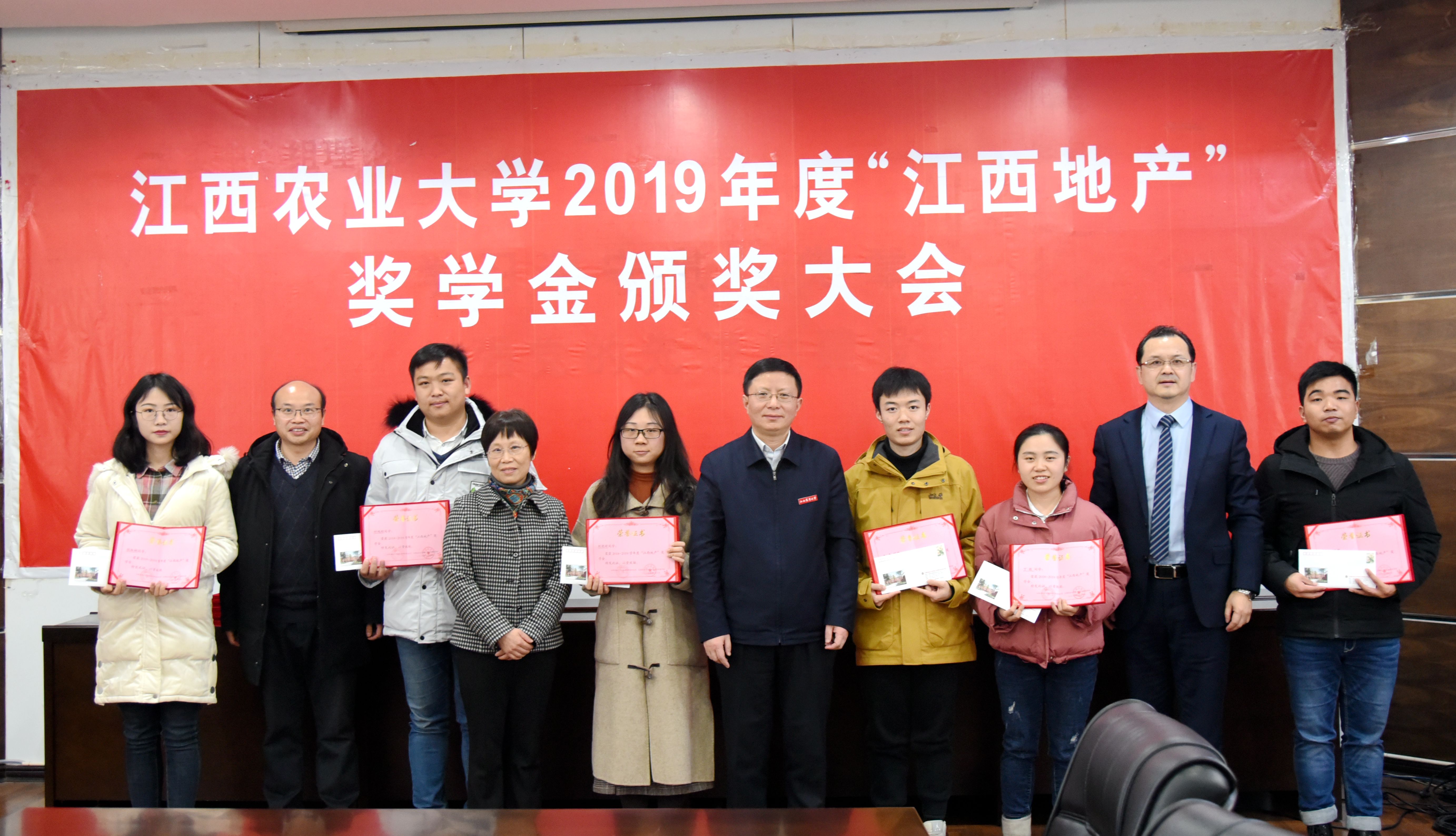 “江西地产”奖学金是江西省地产开发集团有限责任公司为奖励我校国土学院土地资源管理和地理信息科学专业在德、智、体、美、劳等方面全面发展,表现突出的同学而设立的专业奖学金。该奖学金每年奖励研究生6名,每人3000元;本科生16名,每人2000元;共计5万元。
