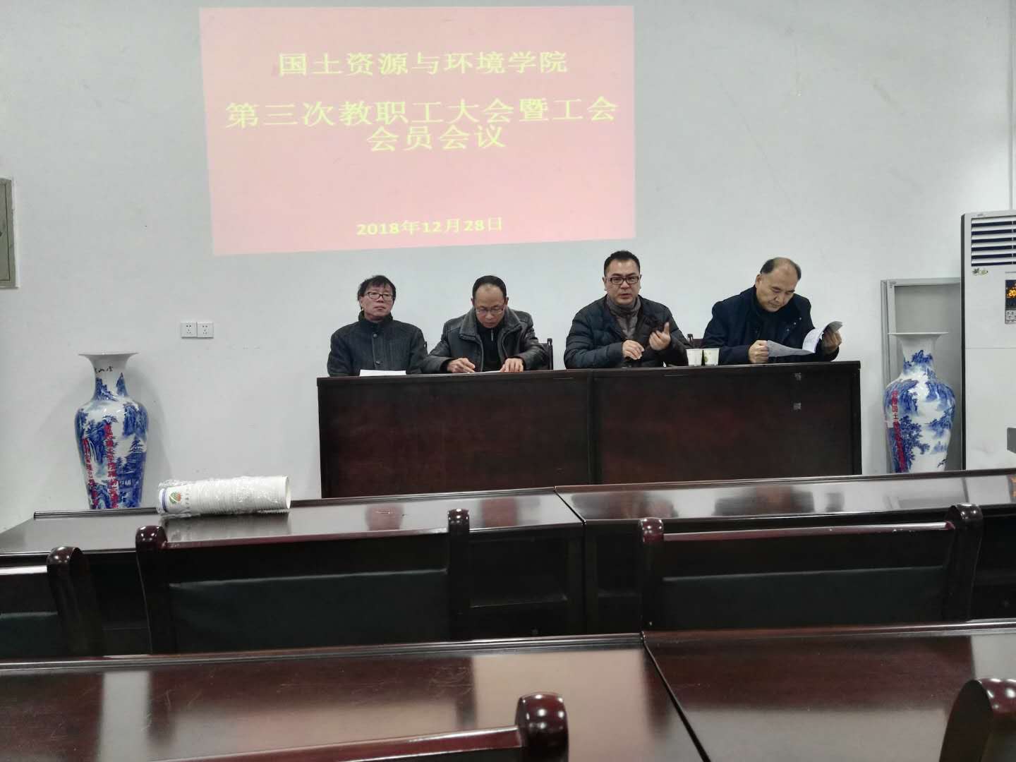 12月28日,我院第三次教职工大会暨工会会员会议在院办会议室隆重召开。院党委书记郭旭、院长李保同、院党委副书记赵刚、副院长周春火、院工会主席肖远东及全院教职工参加会议,院党委副书记赵刚主持会议。