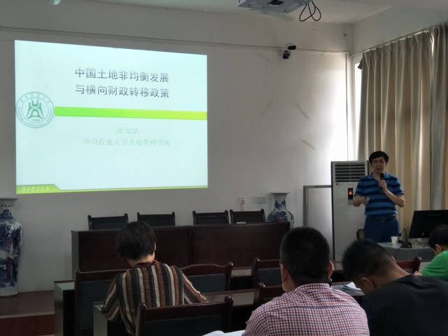 5月29日上午,受国土学院、MPA教育中心、鄱阳湖流域农业资源与生态重点实验室的邀请,华中农业大学公共管理学院院长、教授、博士生导师张安录先生,作题为“中国土地非均衡发展与横向财政转移政策”的学术报告。MPA中心主任陈美球教授主持报告会。学院教师、研究生和本科生共60余人参加并聆听了报告。