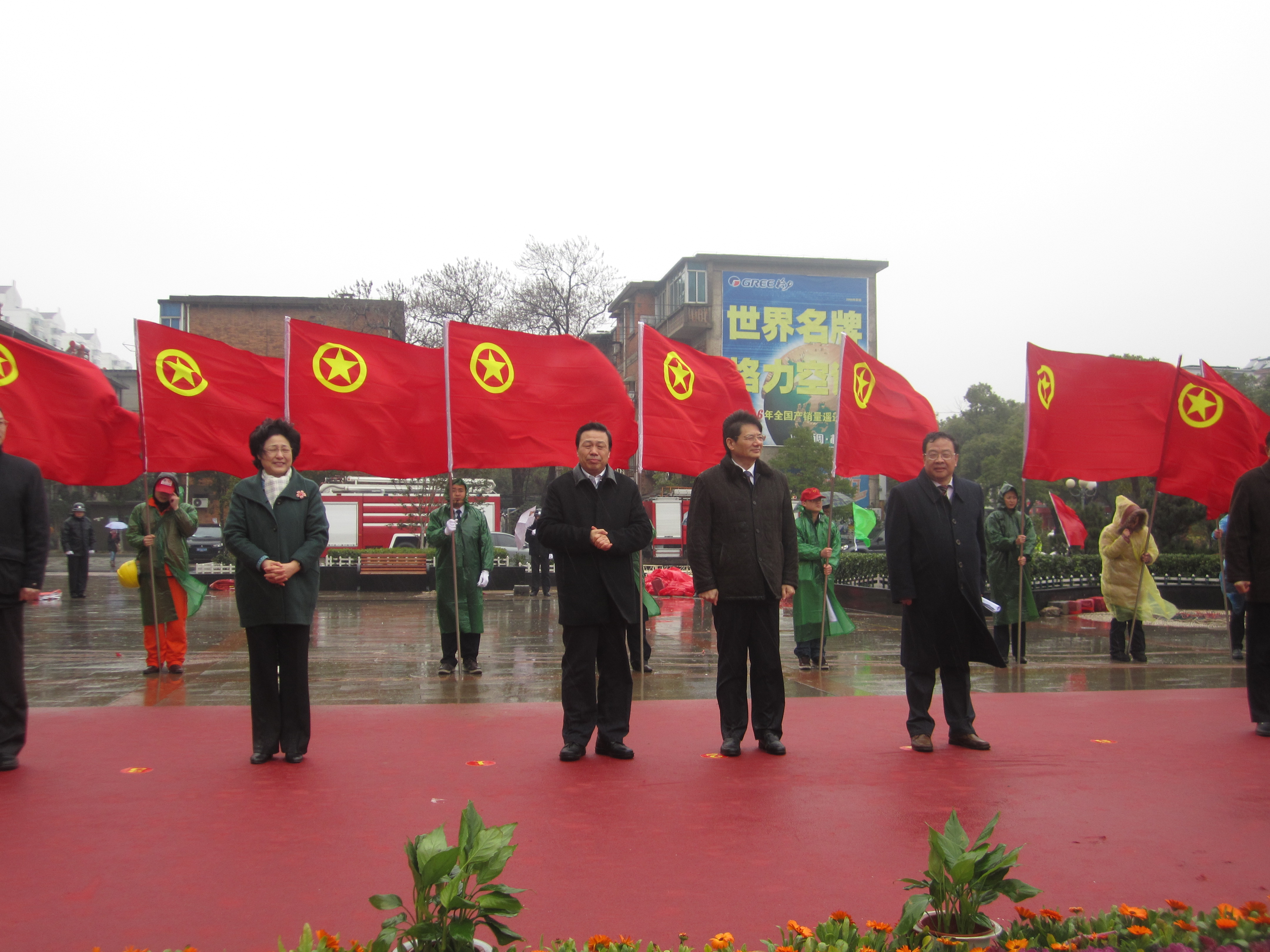 在活动现场,团省委副书记曾萍介绍了江西青少年省“十百千万”学雷锋活动的主题、内容、要求等有关情况。省领导为10位雷锋哥、雷锋姐颁发了纪念杯,向环境保护服务队等10支青年雷锋服务队的代表授了队旗,我校绿源协会会长钱伟代表环境保护宣传服务队接受队旗。省委副书记、省纪委书记尚勇宣布江西青少年“十百千万”学雷锋统一行动日活动正式启动。